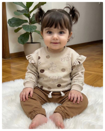 ست بلوز شلوار خرگوش سرشانه چین قهوه ایی– مناسب ۶ ماه تا 3 سال ...............19071