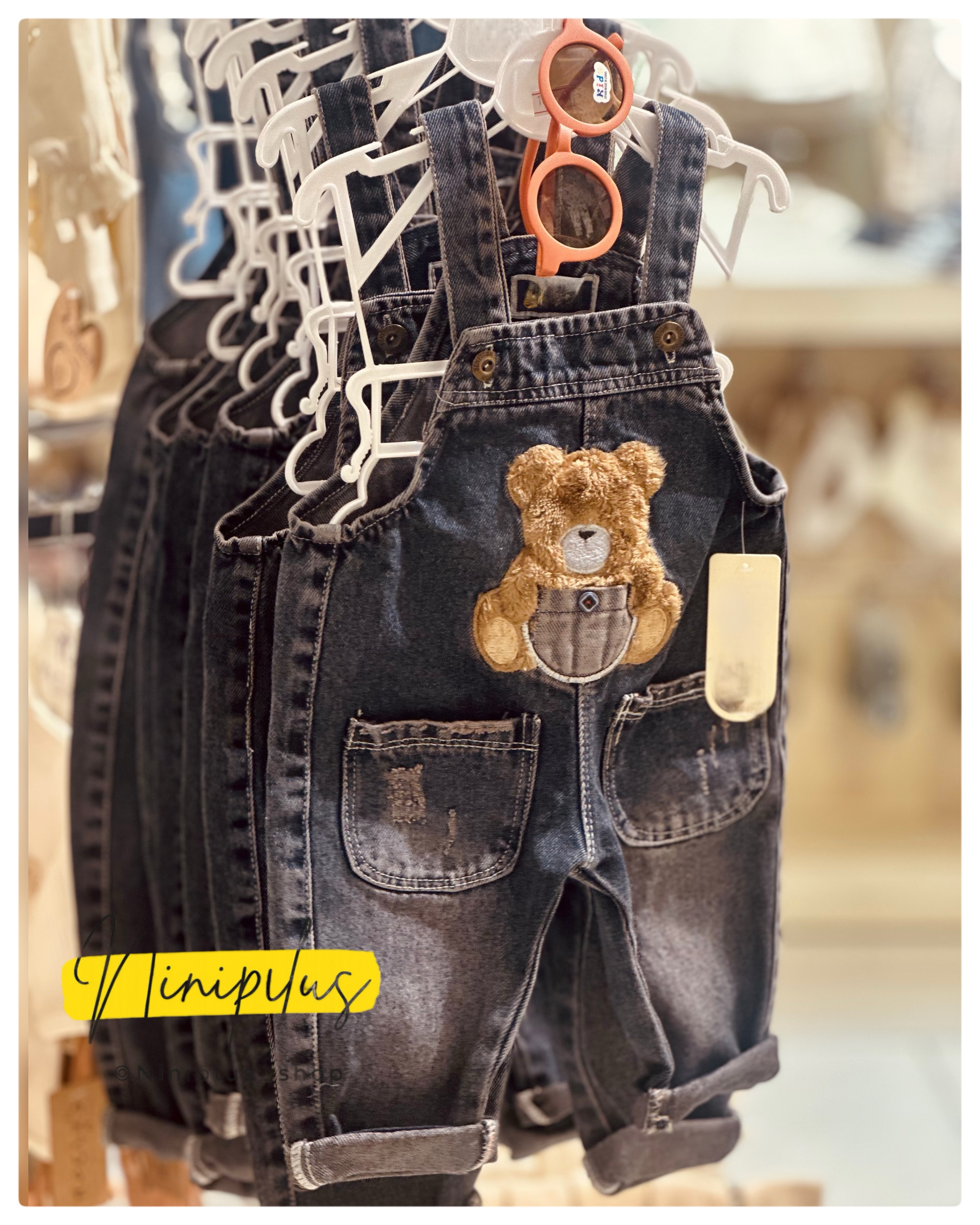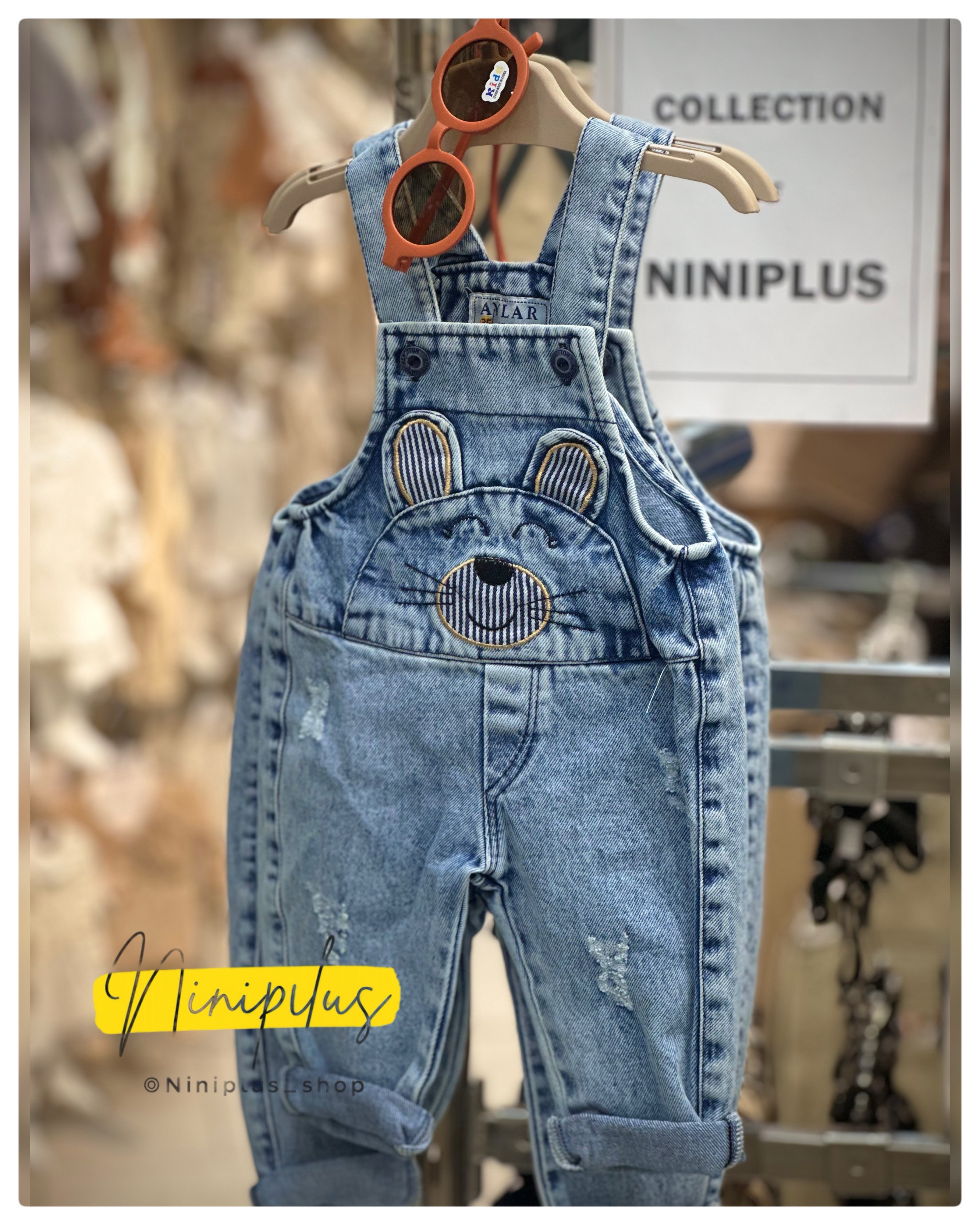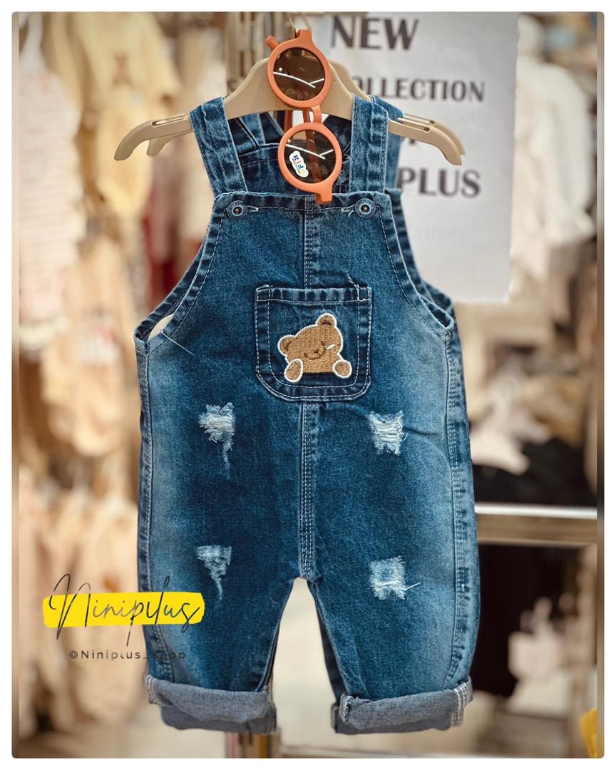 بیلر جین نوزادی آستردار با گلدوزی خرس و جیب | مناسب ۳ ماه تا ۱ سال ............................20120