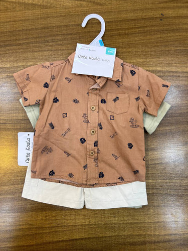 ست 3 تیکه پیراهن شورت کرمی دایناسور هاوایی..................................................................17322