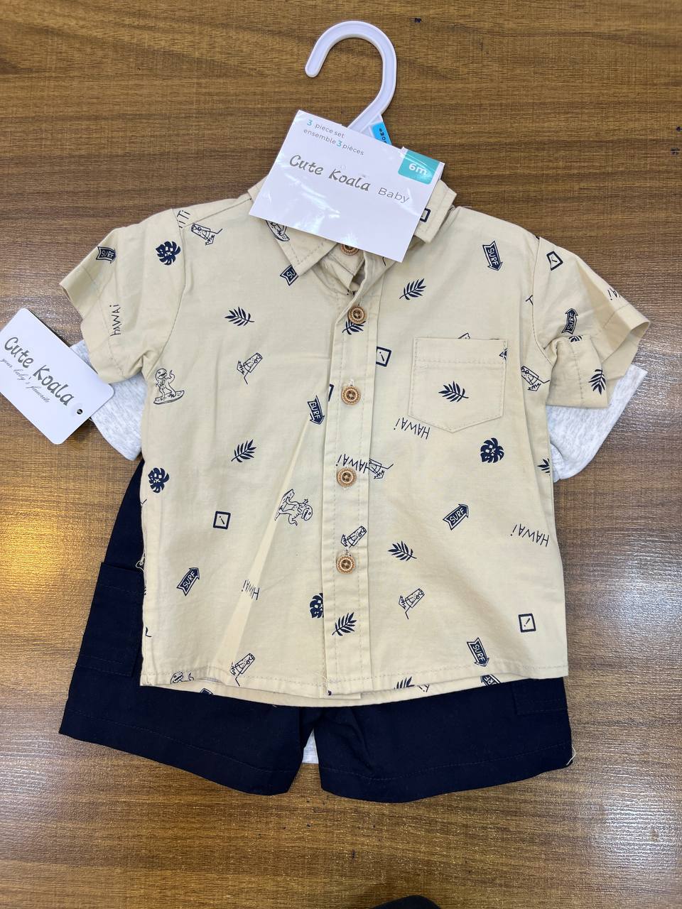 ست 3 تیکه پیراهن شورت کرمی دایناسور هاوایی..................................................................17322