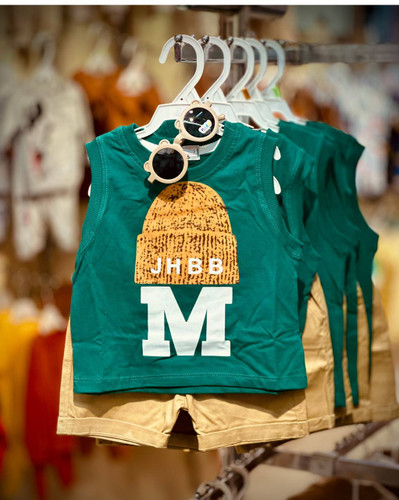 ناموجودست سه تیکه تیشرت شلوارک با ساسپندرز سبز ماشین ..........................................