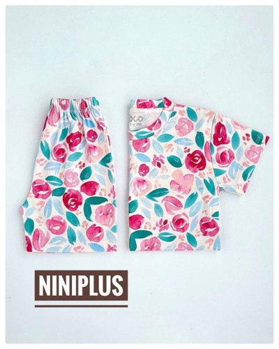 ست تیشرت شلوارک کبریتی گل گلبهی تمام چاپ.............19834