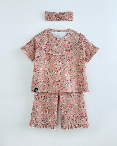 ناموجودست بلوز شلوار با هدبند کوکو طرح گل صورتی .................19922