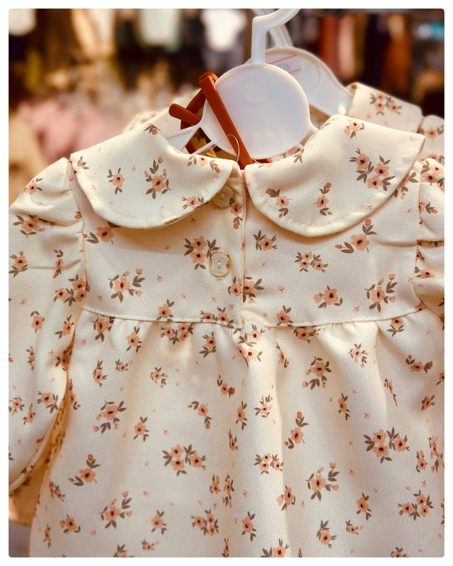 طرح گلهای ریز و دلنشین با جنس پارچهای نرم و راحت، مناسب برای نوزادان از ۶ تا ۱۲ ماه: