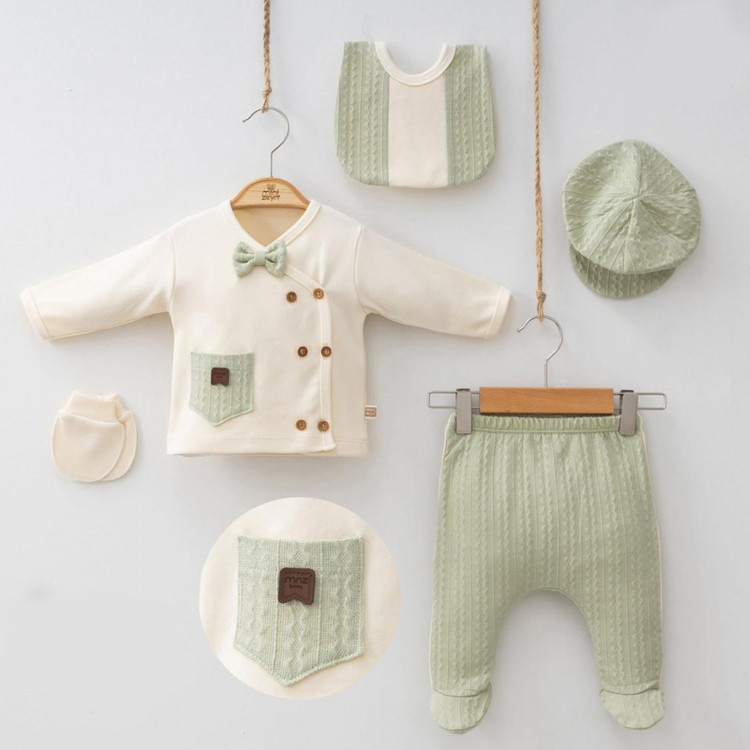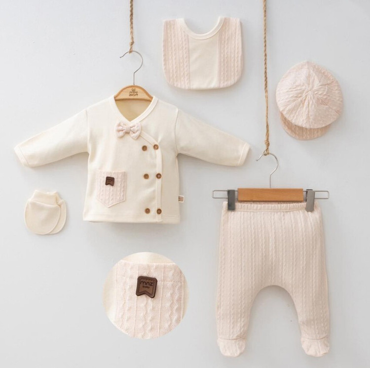 جنس: ست ۱۰۰٪ نخ ضدحساسیت مناسب برای نوزاد سایز صفر تا سه ماه که اغلب ست بیمارستانی هم گفته میشود