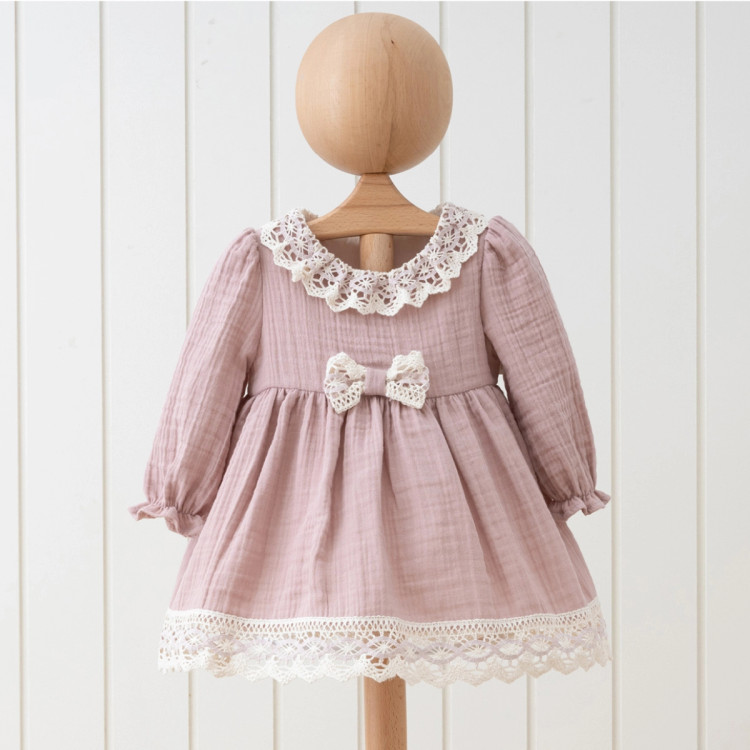 پیراهن دخترانه مجلسی ترک طرح دانتل دورنگ جلو پاپیون...............................19055