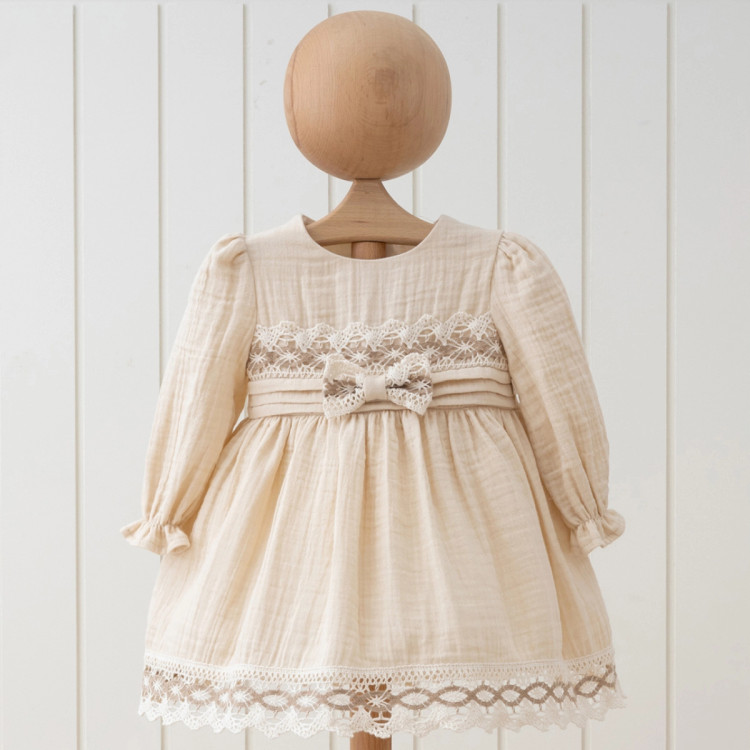 پیراهن مجلسی دخترانه دو رنگ کرم قهوه ایی .......................19024...................