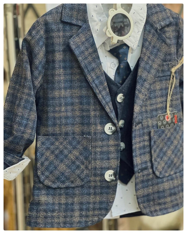 یک انتخاب شیک و کاملاً مناسب جشنها و مهمانیها برای پسر کوچولوهای خوشتیپ! این ست شامل کت آستردار، ژیله و پیراهن، شلوار، پاپیون و کمربند است و از لحاظ دوخت و کیفیت، درجهیک و کاملاً استاندارد میباشد.