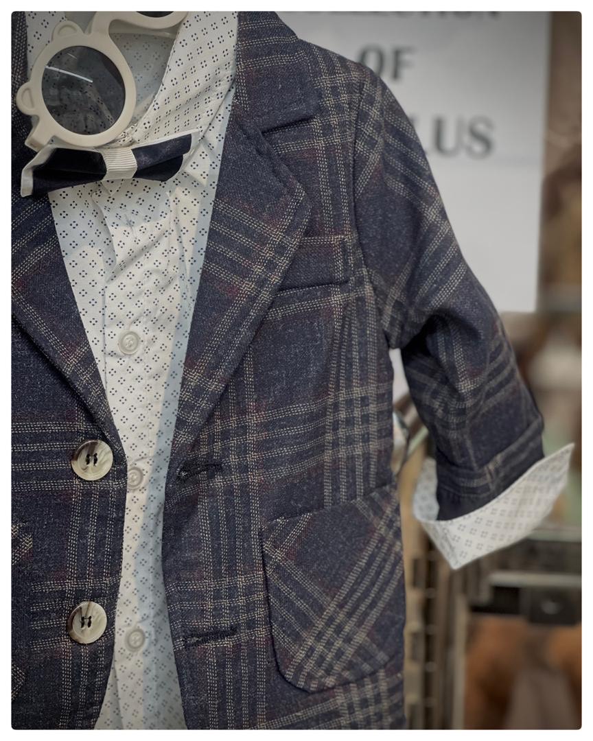 یک انتخاب شیک و کاملاً مناسب جشنها و مهمانیها برای پسر کوچولوهای خوشتیپ! این ست شامل کت آستردار، پیراهن، شلوار، پاپیون و کمربند است و از لحاظ دوخت و کیفیت، درجهیک و کاملاً استاندارد میباشد.