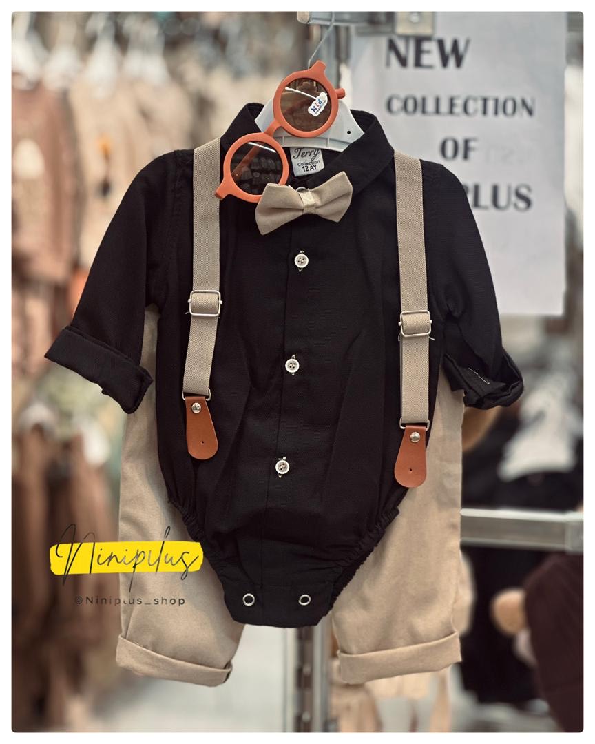 ست 4 تیکه ترک بادی شلوار پاپیون ساسپندر ............................... 19177