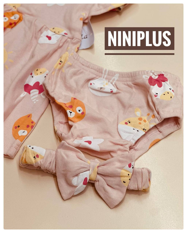 ست سه تیکه پیراهن شورت با تل طرح حیوانات صورتی..........................................................15337