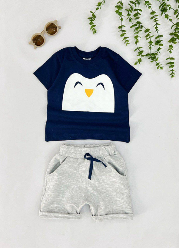 بلوز شورت نخی طرح پنگوئن سورمه ایی .................. 19822