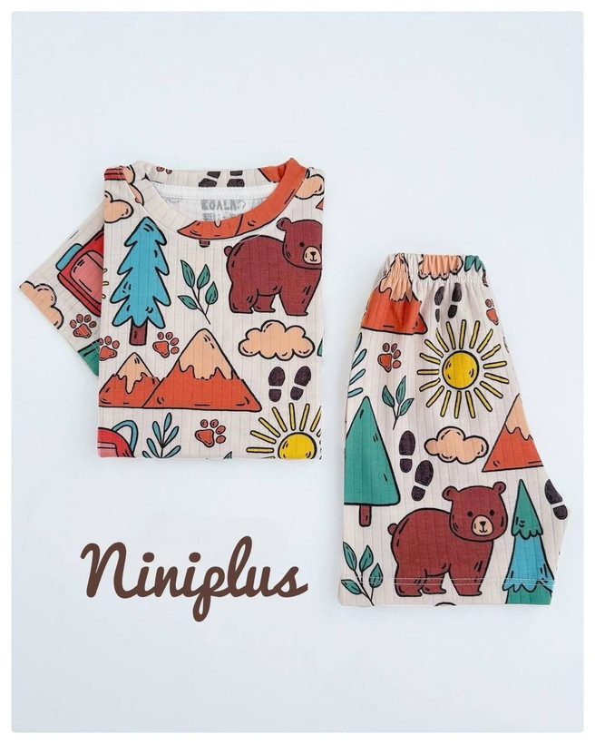 ست تیشرت شلوارک کبریتی طرح خرس و کوهستان ..............................................................19839
