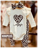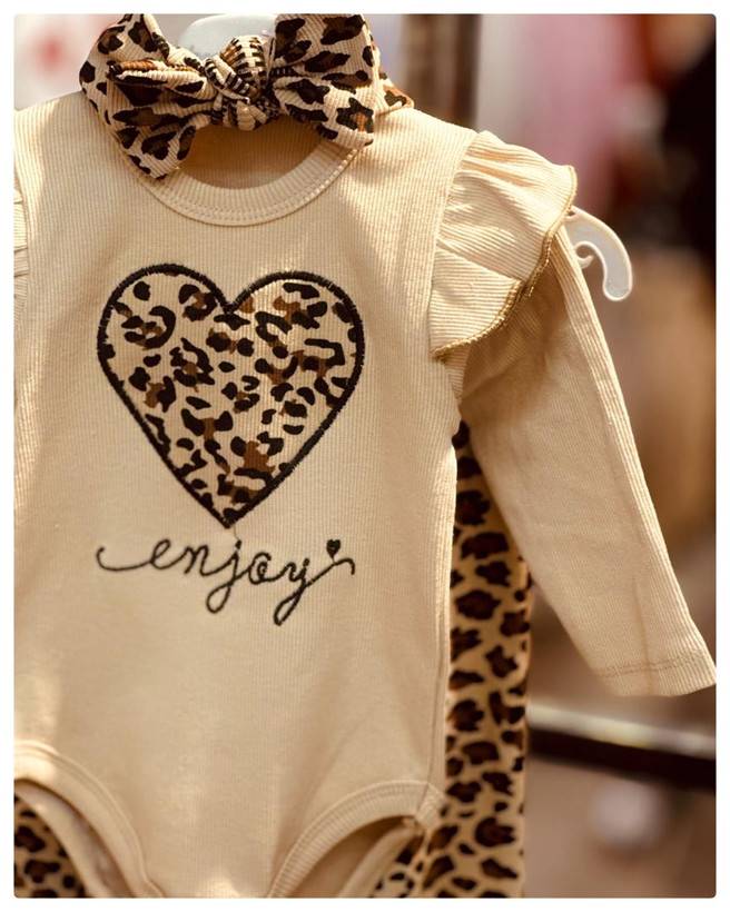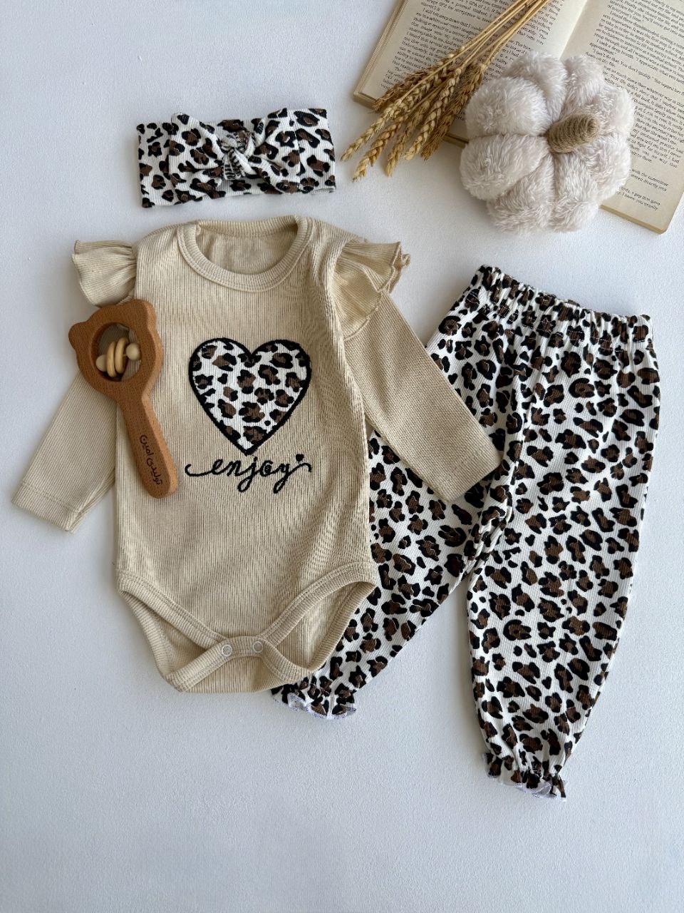 ست سه تیکه بادی شلوار و هد پلنگی قلبی ...................20000