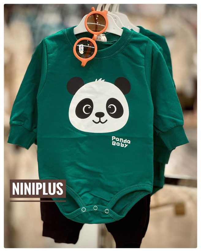 ست بادی شلوار دورس طرح پاندا سبز...................19328