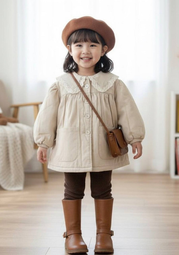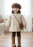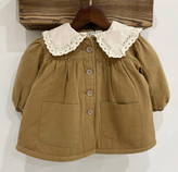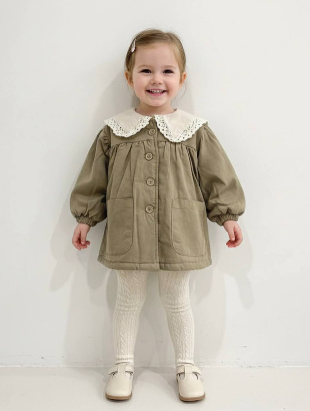 پالتو دخترانه بژ با یقه دانتل مجلسی – لباس پاییزی شیک برای کودکان................. کد 15924