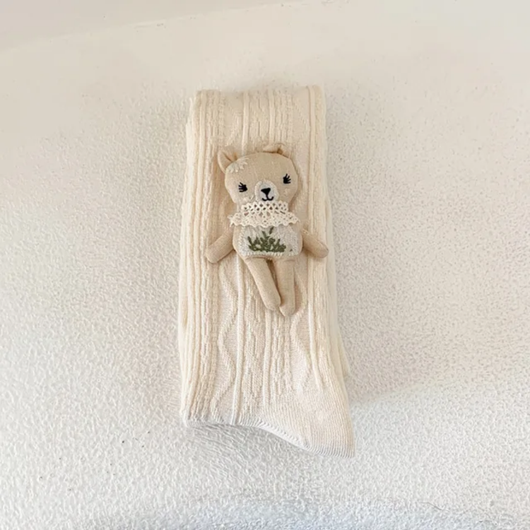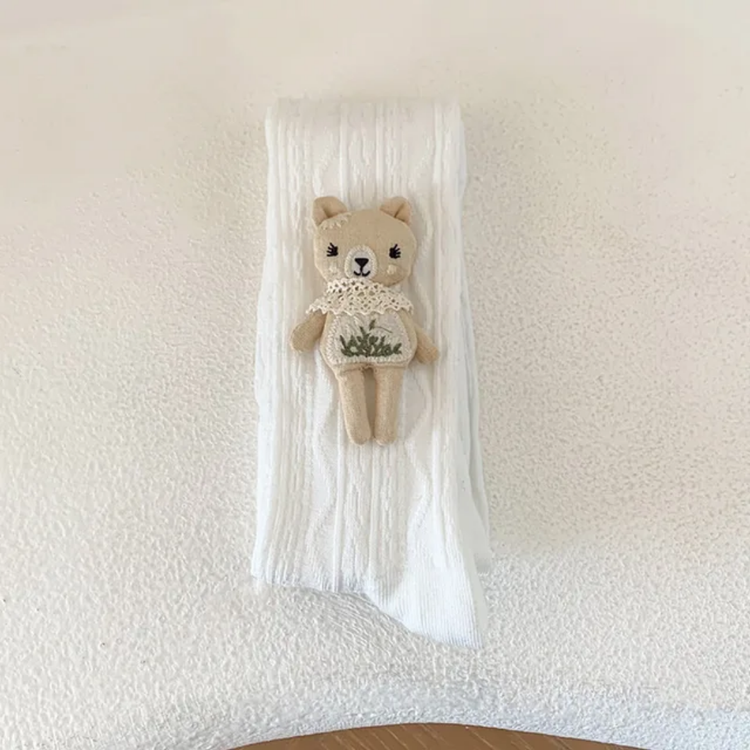 جوراب شلواری دخترانه با عروسک سهبعدی ناز و دوستداشتنی روی یک پا – انتخابی خاص و جذاب برای لبخند زدن کوچولوی شیطون شما!