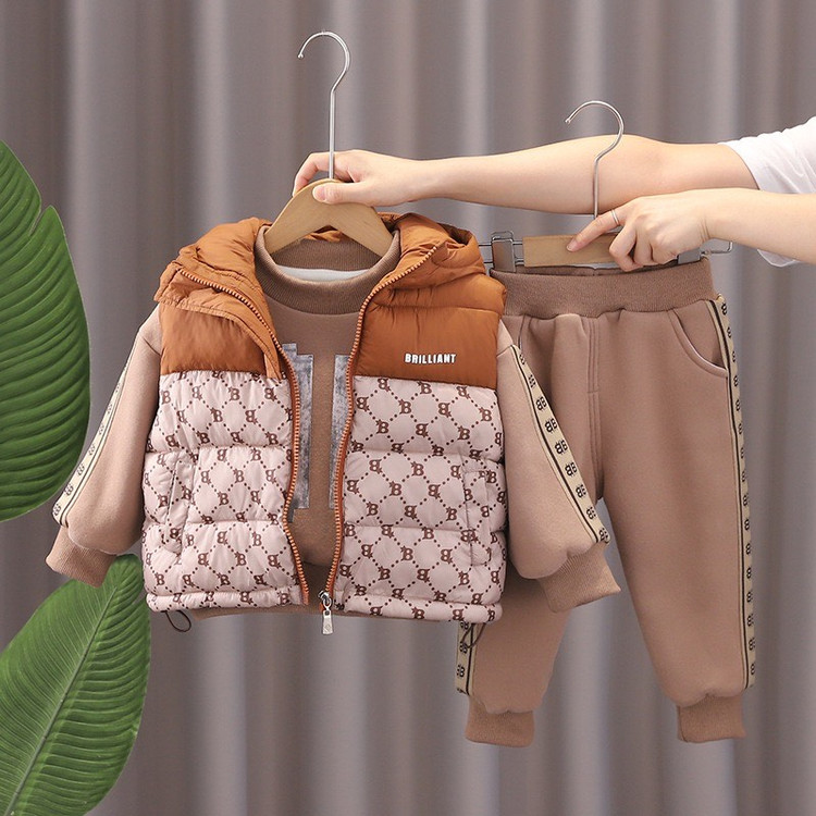 ست سه تکه زمستانی بچگانه مدل برلیانت – پافر کلاهدار، بلوز و شلوار داخل کرکی ......................15477