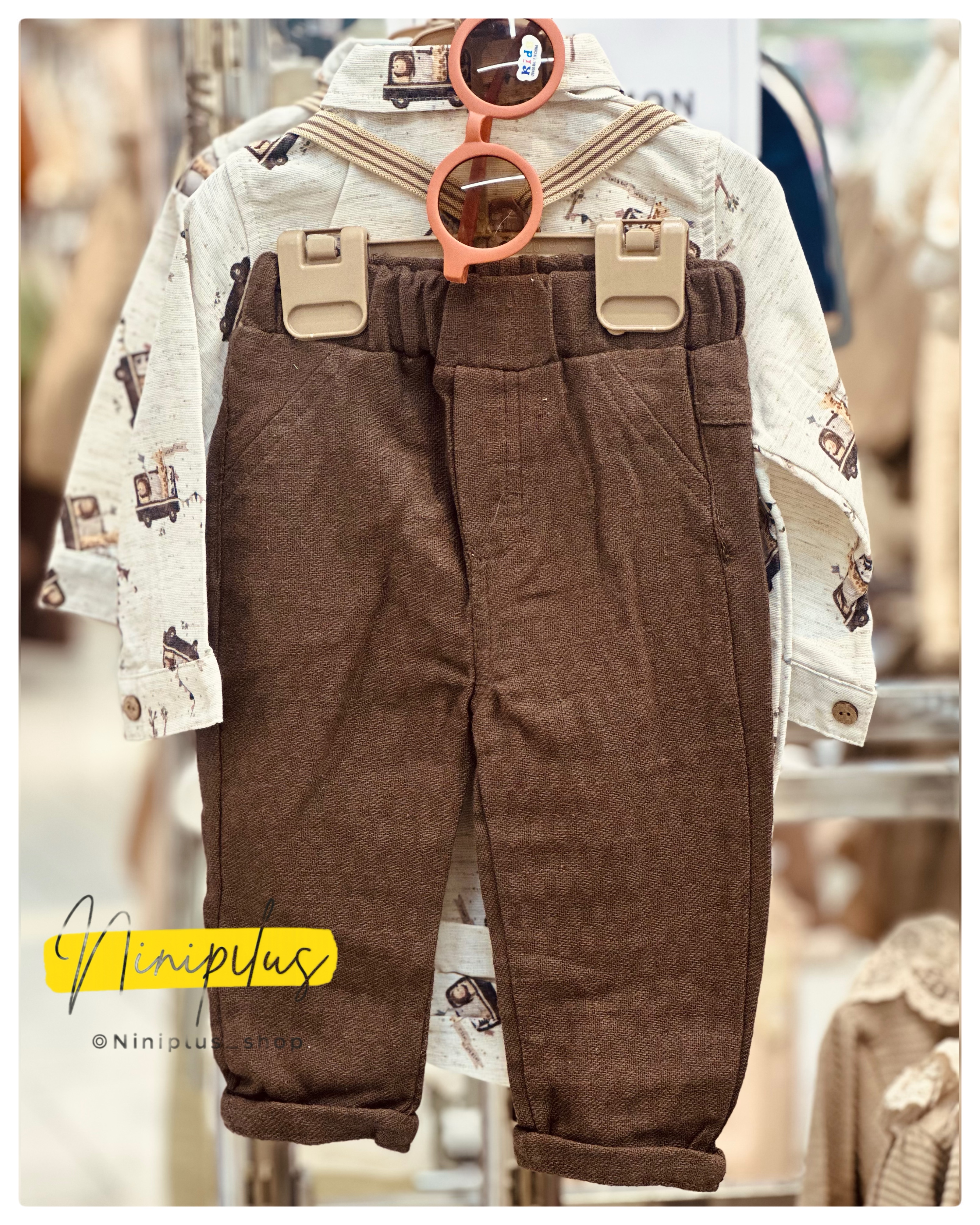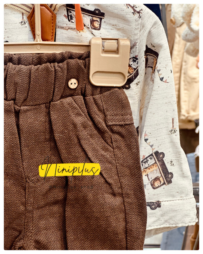 شامل پیراهن طرحدار ترک + شلوار کتان + ساسبند + پاپیون