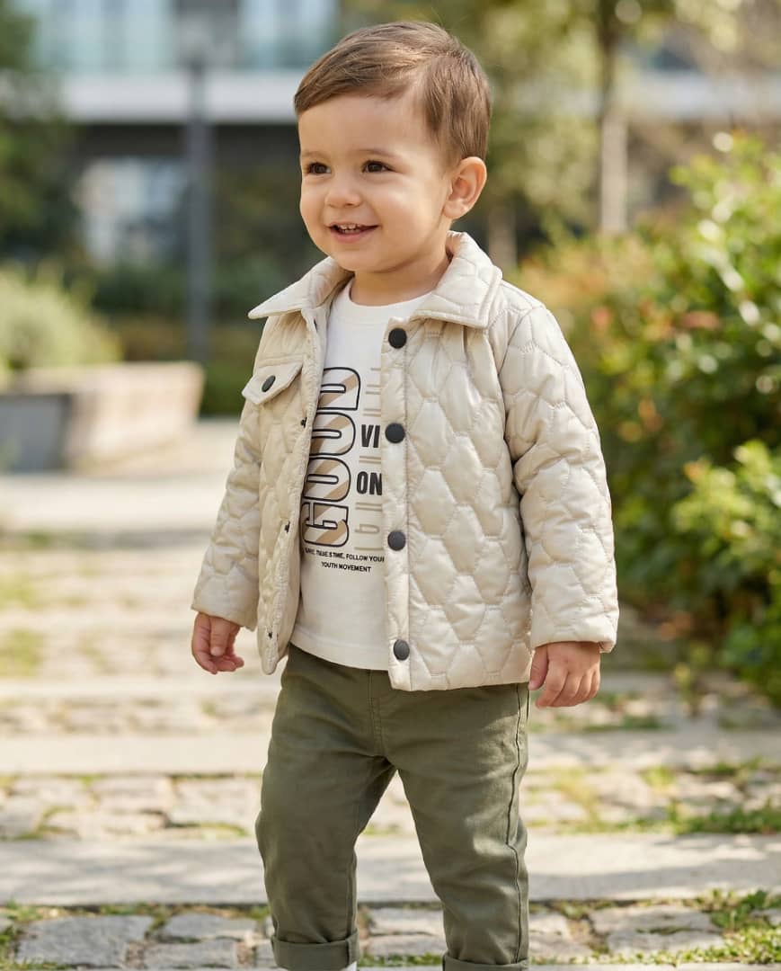 این ست سه تیکه پسرانه شامل کاپشن، بلوز و شلوار کتان است که با طراحی ساده و رنگهای خنثی، استایلی مرتب و کودکانه ایجاد میکند. دوخت منظم و فرم سبک کاپشن باعث میشود کودک در طول روز احساس آزادی و راحتی داشته باشد. پارچههای نرم و تنفسپذیر، مناسب پوست حساس نوزاد هستند و برای استفاده روزمره، مهمانیهای خانوادگی و گردشهای بیرون بسیار کاربردی است. مادرها این ست را بهخاطر دوام، شستشوی آسان و ظاهر شیک آن انتخاب میکنند.