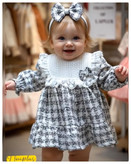 پیراهن دخترانه مجلسی گرم مدل پاپیوندار – مناسب پاییز و زمستان (۶ ماه تا ۳ سال) ............ کد20071