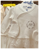 این ست ۵ تکه نوزادی ترک Miniborn با طراحی ظریف و رنگ کرم شیری، انتخابی بسیار شیک و دلنشین برای سیسمونی و مخصوصاً اولین دیدار نوزاد است. پارچهی بافتدار لطیف با جزئیات توری ظریف، جلوهای مجلسی و در عین حال آرامشبخش ایجاد کرده که در عکس نیز کاملاً مشهود است.