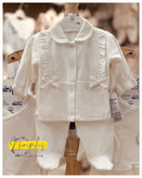 این ست ۵ تکه نوزادی ترک bebelinna با طراحی ظریف و رنگ کرم شیری، انتخابی بسیار شیک و دلنشین برای سیسمونی و مخصوصاً اولین دیدار نوزاد است. پارچه ی مخمل لطیف با جزئیات پاپیون ظریف، جلوهای مجلسی و در عین حال آرامشبخش ایجاد کرده که در عکس نیز کاملاً مشهود است.