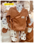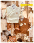 این ست ۵ تکه نوزادی ترک necix’s با طراحی ظریف و اسپرت(مناسب دختر و پسر)در دو رنگ کرم و قهوه ای ، انتخابی بسیار شیک و دلنشین برای سیسمونی و مخصوصاً اولین دیدار نوزاد است. پارچهی بافتدار لطیف ، جلوهای مجلسی و در عین حال آرامشبخش ایجاد کرده که در عکس نیز کاملاً مشهود است.