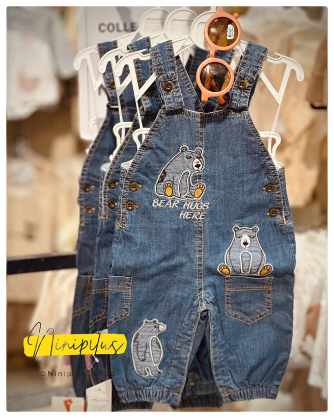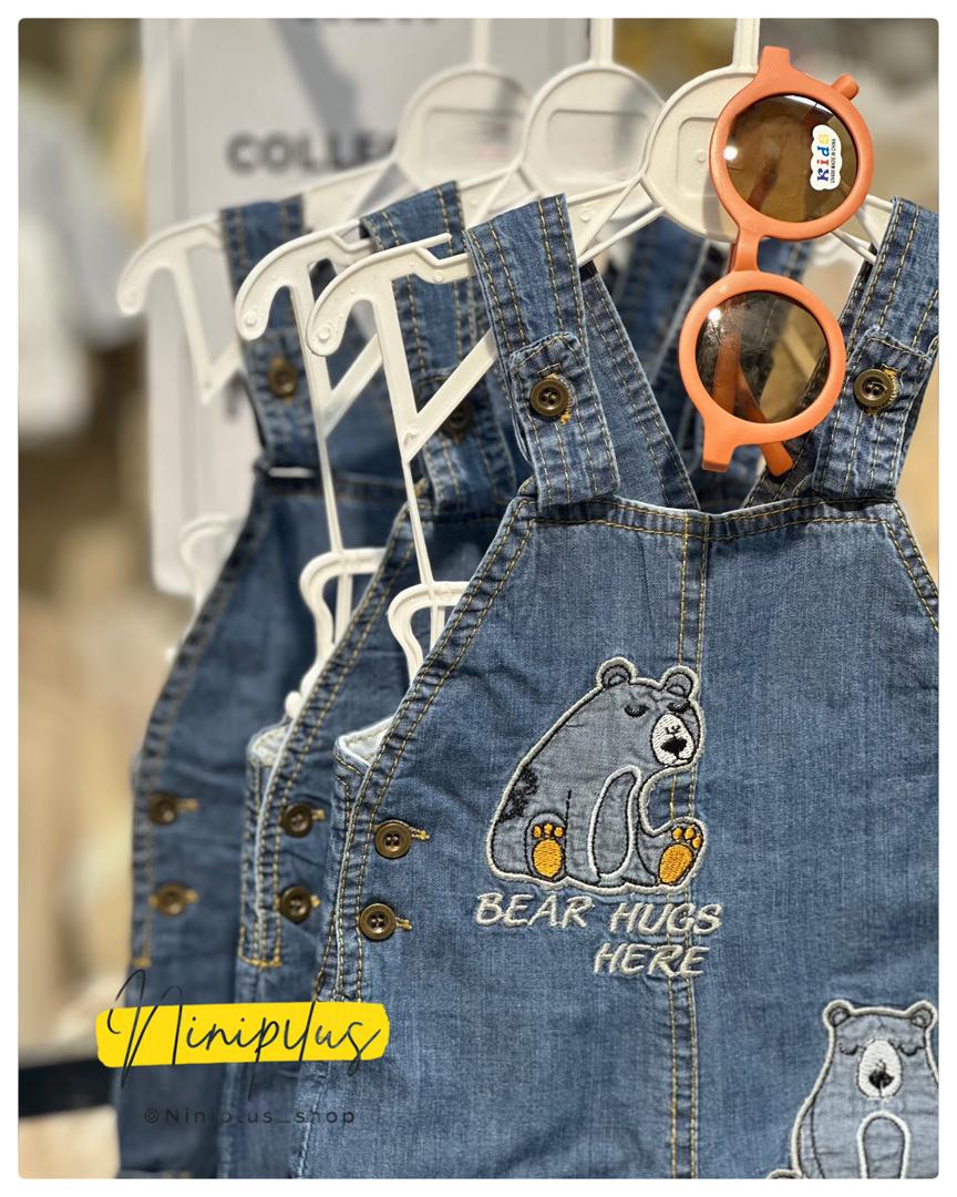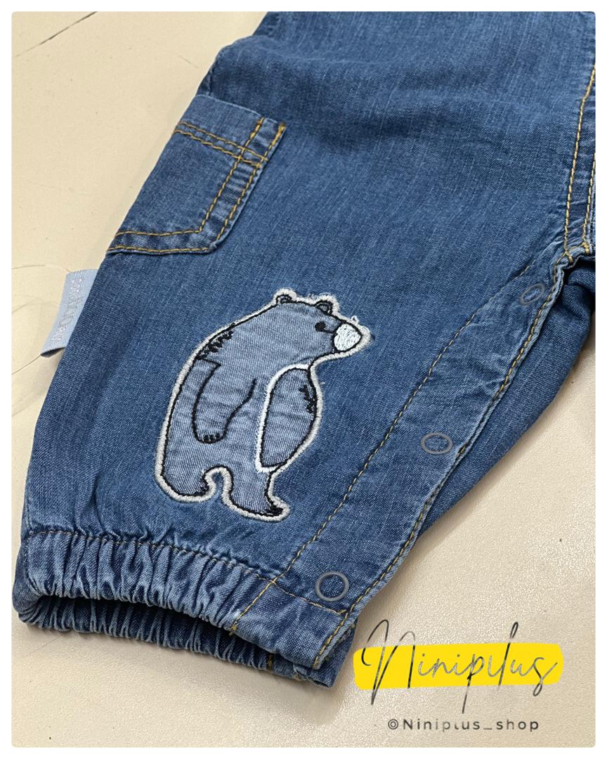 بیلر جین نوزادی آستردار با گلدوزی خرس | مناسب ۳ ماه تا ۱ سال ............................20123