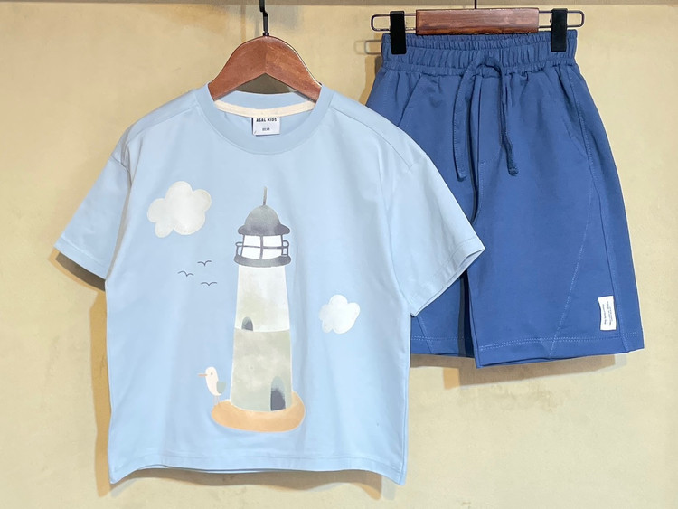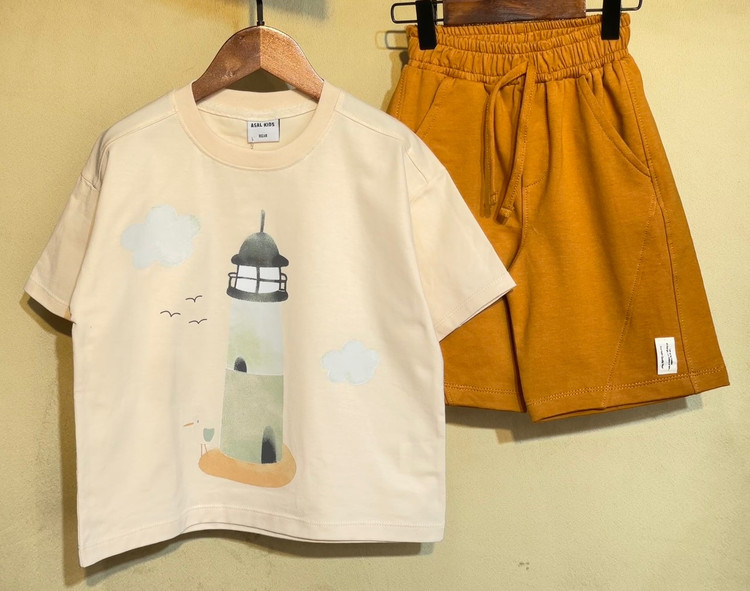 ست تیشرت شلوارک نخی فانوس دریایی مناسب 1 تا 4 سال ............کد 15747
