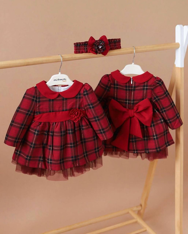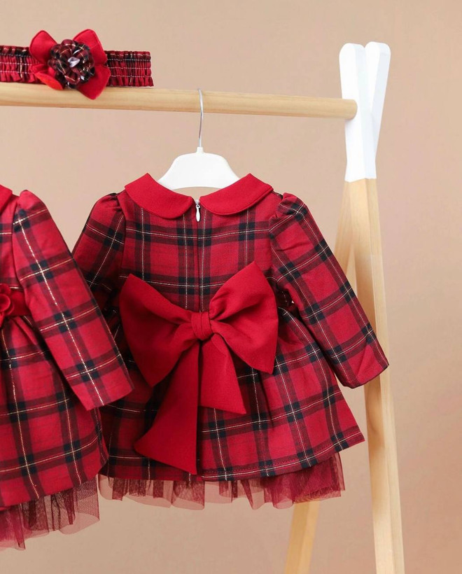 پیراهن دخترانه مجلسی ترک طرح چهارخونه قرمز ......................................... 18738