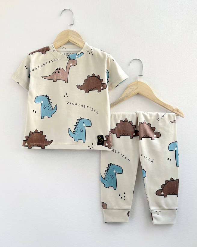 ست بلوز شلوار آستین کوتاه نخی طرح دایناسور ...........................................................19124