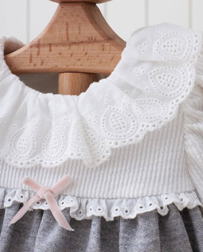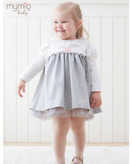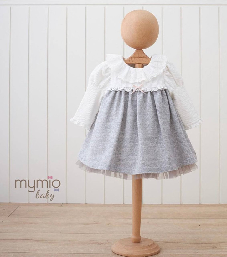 پیراهن دخترانه مجلسی ترک طرح طوسی آستین پفی..............19044-.............