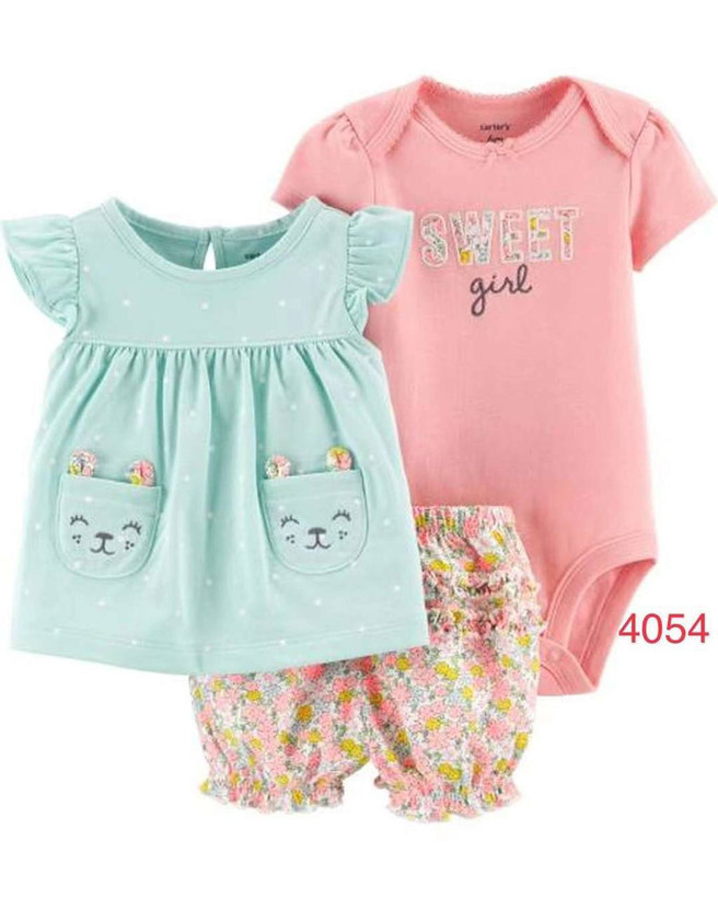 ست سه تیکه دخترانه طرح خالدارسبز جیب خرگوشی کارترز..................................................................19130