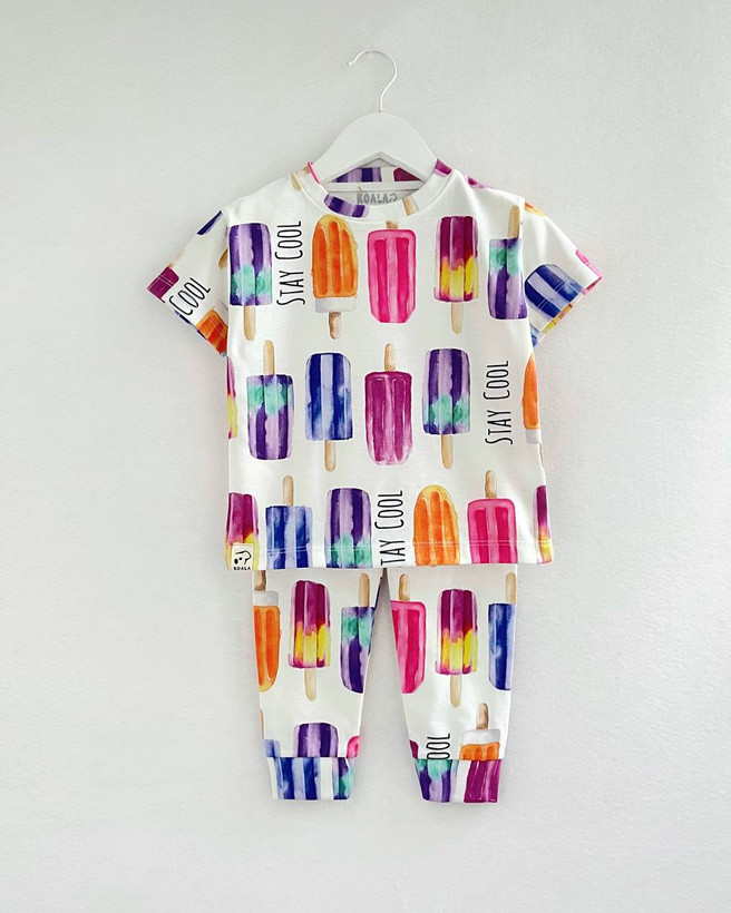ست بلوز شلوار آستین کوتاه نخی طرح بستنی ..............................................................19197