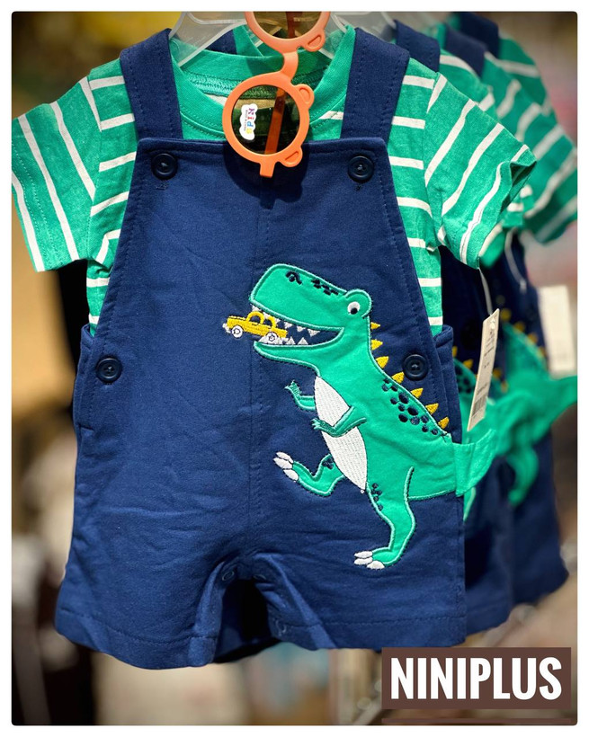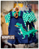 ست دوتیکه بیلر و تیشرت کارترز طرح سورمه ایی سبز دایناسور و ماشین .............................................19212