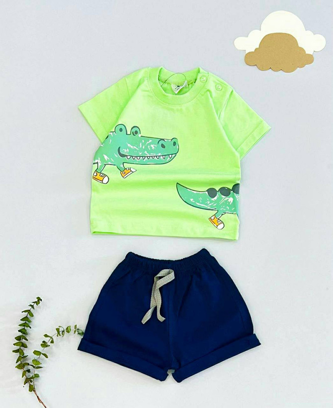 بلوز شورت طرح تمساح سبز کتونی پوش .............................................10406