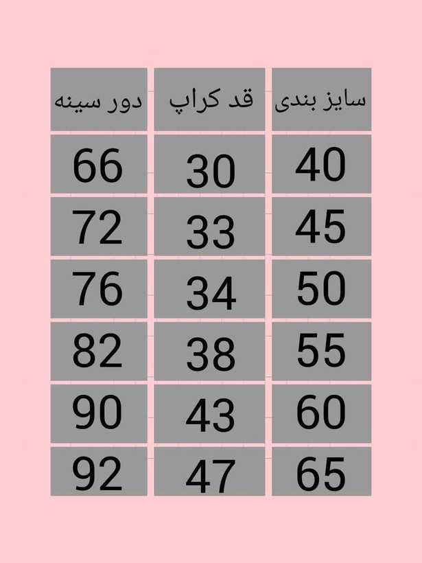 توجه: اندازه ها و چارت جدول در عکس آخر است