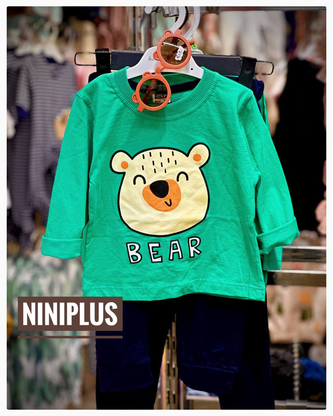 بلوز شلوار نخی خرس بیر سبز .....................................................19254