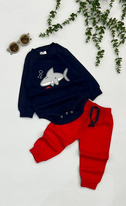 ست بادی شلوار دورس طرح نهنگ سورمه ایی ...................................19323