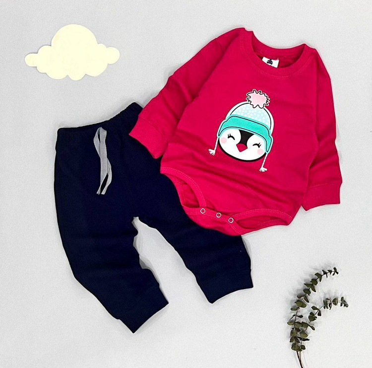 ست بادی شلوار دورس طرح سرخابی پنگوئن ...................................19325