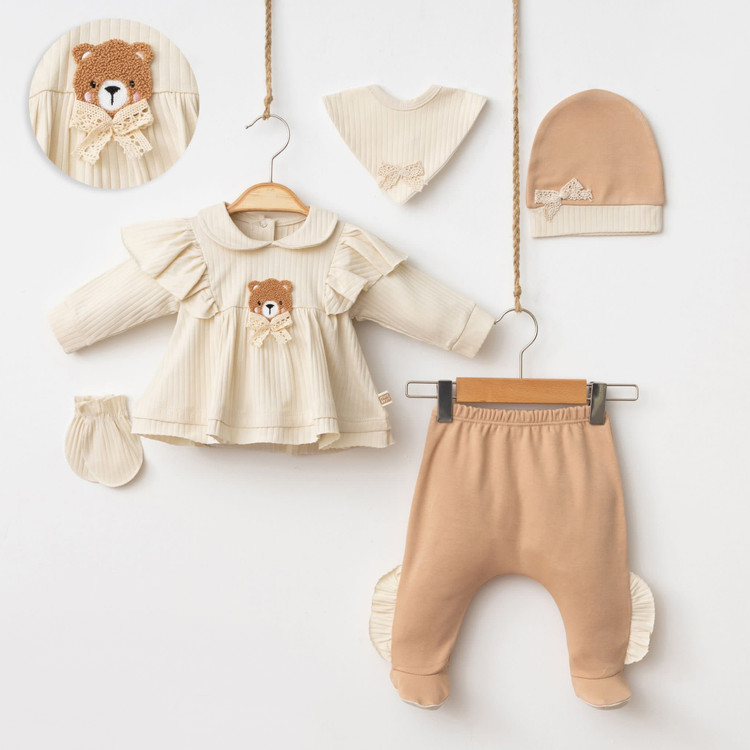 جنس: ست ۱۰۰٪ نخ ضدحساسیت مناسب برای نوزاد سایز صفر تا سه ماه که اغلب ست بیمارستانی هم گفته میشود