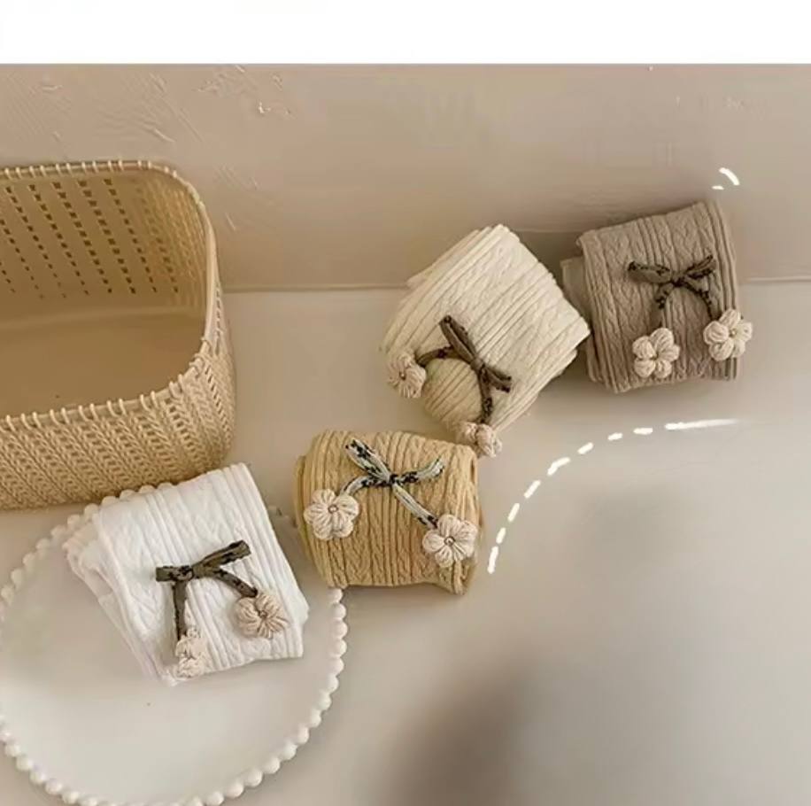 جوراب شلواری طرح شکوفه گل طلایی و پاپیون .......17530