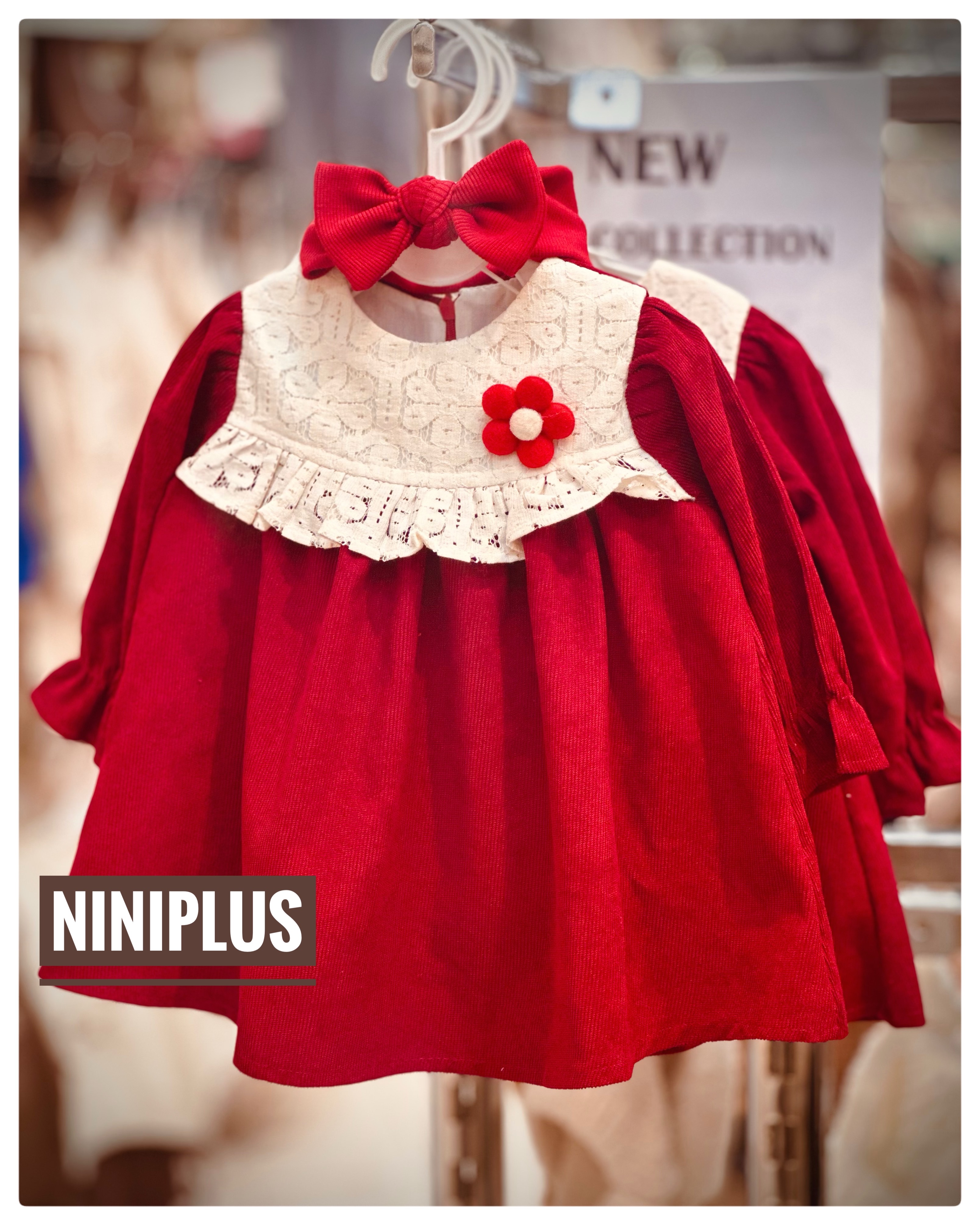 پیراهن دخترانه یلدایی مخمل کبریتی – مناسب ۶ ماه تا ۳ سال ........20056