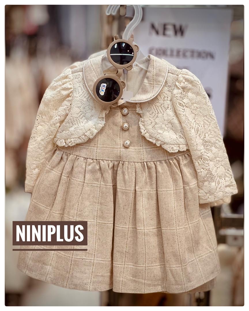 پیراهن دخترانه چهارخونه کرم جلو دانتل .............. 19056..4117